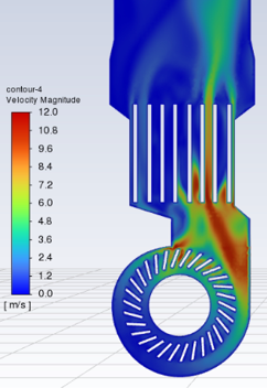 Post processing의 다양한 기능을 활용하여 속도, 온도장 분석을 수행하고 제품의 성능개선 방향을 검토할 수 있다.